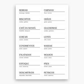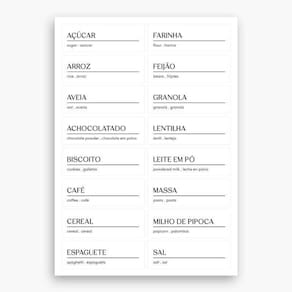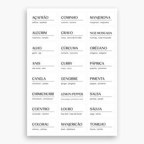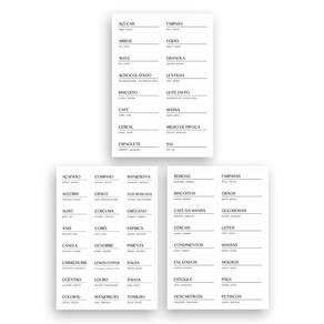 ASPEN DECOR EA100 3 Cartelas com Etiquetas Adesivas Para Temperos, Mantimentos e Despensa Adesivos Temperos: Açafrão, Cominho, Manjerona, Alecrim, Cravo, Noz Moscada, Alho, Cúrcuma, Orégano, Anis, Curry, Páprica, Canela, Gengibre, Pimenta, Chimichurri, Lemon Pepper, Salsa, Coentro, Louro, Sálvia, Colorau, Manjericão, Tomilho. Adesivos Mantimentos: Açúcar, Farinha, Arroz, Feijão, Aveia, Granola, Achocolatado, Lentilha, Biscoito, Leite em Pó, Café, Massa, Cereal, Milho de Pipoca, Espaguete, Sal. Adesivos Despensa: Bebidas, Farinhas, Biscoitos, Grãos, Café da Manhã, Guloseimas, Cereais, Leites, Condimentos, Massas, Enlatados, Molhos, , Pães, Descartáveis, Petiscos.