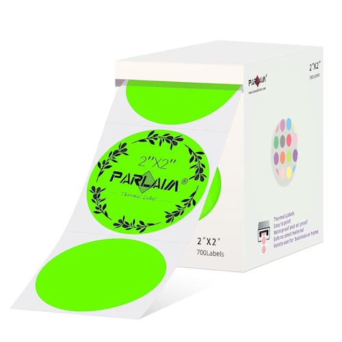 - Etiquetas térmicas Circle Direct de 2 polegadas - 700 unidades por rolo, núcleo de 1,1 polegada, autoadesivas, sem necessidade de tinta, toner ou fitas! Impermeável, à prova de óleo, resistente a rasgos, resistente ao álcool. Livre de BPA e BPS.