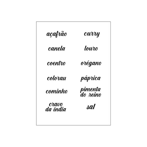 Contem:12 Etiquetas para Temperos Medidas: 7 x 2,5 cmMaterial: Vinil
