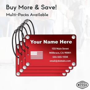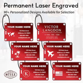 Etiquetas de bagagem personalizadas: Etiquetas de bagagem de metal personalizadas para malas, mochilas e bolsas com seu texto personalizado (vermelho) - Etiquetas de metal para bagagens: Estrutura de alumínio de camada dupla resistente para maior durabilidade. - Fácil de reivindicar: vários padrões de etiquetas de bagagem, fácil de localizar. - Fácil de fixar: fixação segura do cinto para evitar descolamento acidental. - Gravação a laser: Gravação a laser dupla face para um visual premium. - Presentes perfeitos: ideal para pais, amigos, irmãos e muito mais.