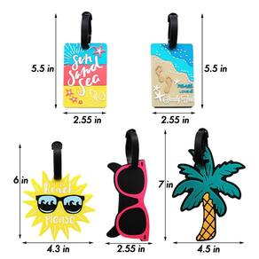 Mziart Etiquetas de bagagem fofas para mulheres e homens, etiquetas de bolsa de praia de verão exclusivas etiquetas de identificação de mala de viagem, conjunto de 5, Multicolorido. - Etiquetas de bagagem tropicais exclusivas: um pacote de 5 etiquetas de bagagem de praia de verão tropical. Sua bagagem será vista à primeira vista, identifique facilmente sua mala na retirada de bagagem do aeroporto - Cartão de informações: Etiquetas de bagagem fofas com nota informativa substituível para escrever NOME e endereço, rastreamento fácil. A capa transparente à prova d'água para evitar que suas informações fiquem molhadas - Presentes perfeitos para o Dia dos Namorados, casamentos, aniversários, Dia das Mães ou Dia dos Pais. Ótimos presentes de Natal para colegas ou viajantes em sua vida - Durável por anos: use borracha de alta qualidade e design de laço resistente ajustável em forma de cinto para evitar que se quebre ou perca suas etiquetas. Mais espessa do que outras etiquetas de bagagem de cruzeiro, mais duráveis contra choques e clima chuvoso/nevado - Segurança e uso amplamente: Também é perfeita para etiquetar qualquer coisa que você possa deixar sozinha, como bolsas de bola de boliche, bolsas de ginástica, pasta, mochilas, bolsa de golfe, bolsa escolar, carrinho de bebê ou capa de instrumento musical