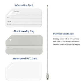 - PACOTE: Cada pacote de conjunto de etiquetas de bagagem inclui: caixa de liga de alumínio, fio de aço inoxidável, papel em branco, tampa de PVC na frente do papel.