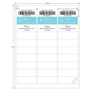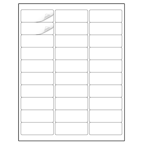 Tamanho da etiqueta: 1" x 2-5/8", tamanho da folha: 8,5" x 11". 30 por página, 30 folhas, 900 etiquetas