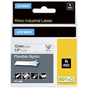 Dymo Industrial Flexible Nylon Labels se conformam e grudam firmemente em fios, cabos e superfícies curvas e texturizadas. Estes adesivos personalizados são projetados com um material à prova de lágrimas que resiste a danos quando puxado através de espaços apertados ou conduítes e uma divisão fácil de descascar para trás que torna a aplicação de rótulos um snap. Compatível com dymo rhino 4200, 5200, 6000 impressoras de etiquetas industriais.