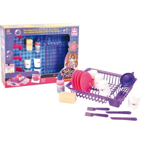 Descrição: Com o Kit lava Louça Escorredorzinho da Nig Brinquedos, as crianças podem lavar as louças e, de cara, aprender a deixar tudo limpinho e organizado, como na cozinha das mamães!