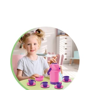 Kit completo com 14 peças: Inclui forminha de bolo, xícaras, pratinhos e colheres, oferecendo tudo o que é necessário para um completo e divertido chá da tarde imaginário.
