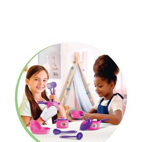Embora a cor dominante seja rosa, o kit é ideal para todas as crianças que gostam de brincar de cozinhar, estimulando a imaginação e o faz de conta.