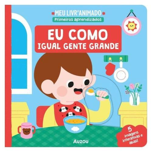 Aprenda a comer igual gente grande por meio de mecanismos simples e fáceis de ativar! Na última página, divirta-se tentando adivinhar o que está escondido sob as abas.