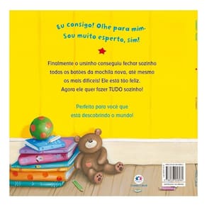 Eu consigo! Olhe para mim. Sou muito esperto sim! Finalmente, o ursinho conseguiu fechar todos os botões sozinho, até os mais difíceis da sua nova mochila! Ele está tão feliz. Mas agora ele quer fazer tudo sozinho... Perfeito para você que está descobrindo o mundo!