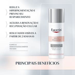 EUCERIN ANTI-PIGMENT NOITE CREME FACIAL CLAREADOR Anti-Pigment Noite é um clareador de pele da linha Anti-Pigment Eucerin, testado e desenvolvido para enzima humana, que trás o ativo revolucionário Th