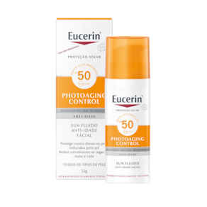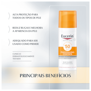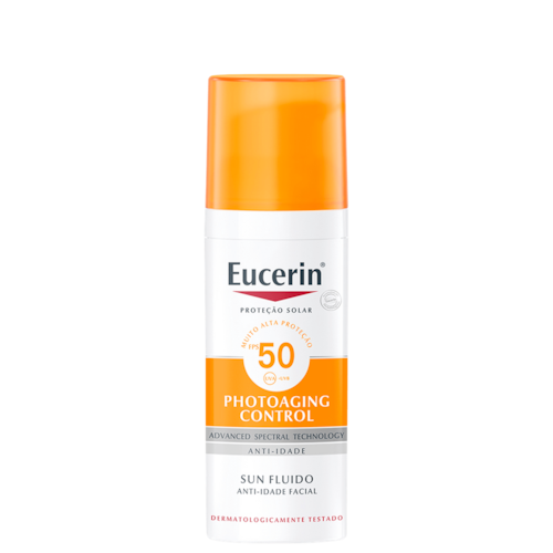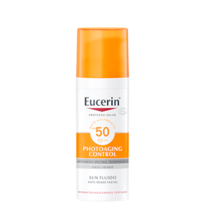 Protetor solar facial para todos os tipos de pele. Eucerin Sun Fluido Anti-Idade FPS 50 traz alta proteção, suaviza rugas e melhora a aparência da pele.