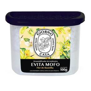 Evita Mofo Flor de Baunilha 100g Giorno Casa O Evita Mofo Giorno Casa protege o ambiente dos efeitos da umidade como deterioração de móveis e objetos , absorvendo as partículas de água presentes no ar e prevenindo assim a proliferação de fungos e mofo bem como as doenças de trato respiratório ocasionadas por estes microorganismos. Ideal para áreas fechadas ou com pouca circulação de ar como armários, gavetas, baús, dispensas, cofres e outros. Evita Mofo Giorno Casa aromatiza suas roupas enquanto desumidifica. Aroma Flor de Baunilha. Modo de uso: Limpe o local antes de colocar o Evita Mofo; Remova a tampa da embalagem e retire o lacre de alumínio; Tampe a embalagem e coloque no local, Pronto, seu ambiente agora ficará protegido e perfumado. À um clique de você, a Beleza traz os produtos mais amados na área da Beleza, Perfumaria, Cuidados Pessoais e Aromáticos. Trabalhamos apenas com produtos acompanhados de . Garantimos a melhor experiência de compra aos nossos clientes, sempre com a qualidade e o preço justo que você merece Boas compras ; Marca: Não Informado