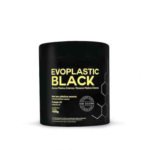 Evoplastic black renova plásticos externos 400g evox Evoplastic black renova plásticos externos 400g evox Evoplastic black é um produto que renova e promove brilho em plásticos externos de automóveis, principalmente para os plásticos originalmente mais escuros. Por não conter silicones, é ideal para ser em oficinas de repintura automotiva. Modo de uso: Com a superfície limpa e seca, aplicar uma pequena quantidade do produto com auxílio de um aplicador de espuma, realizando movimentos circulares e uniformes até a total cobertura da peça. Em caso de excesso, pode realizar acabamento com toalha de microfibra limpa e seca. Importante: O rendimento poderá variar para mais ou para menos a depender do modelo do carro e estado de conservação dos plásticos. Benefícios: Pronto uso Rendimento médio: até 100m² Durabilidade média: até 60 dias Não recomendado para plásticos internos ou claros Marca: Não Informado Ean: 7898511030042