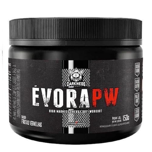 ÉVORA PW Darkness é um pré-treino desenvolvido para favorecer a realização de treinos de força em alta intensidade. Com fórmula energizante, garante melhora da condição física e do desgaste mental, pontos primordiais para bodybuilders que querem sempre dar um "passo a diante" em sua forma física ou no desempenho.