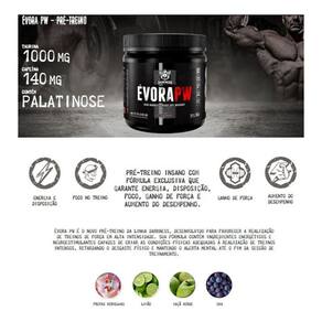O Evora PW é um poderoso pré treino formulado com componentes diferenciados que juntos potencializam a performance, força e recuperação física do usuário para um patamar realmente diferenciado jamais experimentado antes. Isso é possível pois o Evora foi formulado com componentes escolhidos minuciosamente por conta de seus benefícios individuais e seus benefícios combinados. Os especialistas da Integralmedica formularam o poderoso Evora PW com os seguintes componentes... Beta alanina, cafeína, taurina e palatinose, a combinação perfeita que ajuda a aumentar a performance de forma imediata e também de forma gradativa, ou seja, ao longo do uso do Evora PW vai deixando o usuário mais forte, com a performance melhorada.