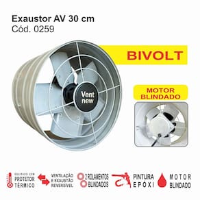 EXAUSTOR E VENTILADOR ALTA VAZÃO PAREDE 30cm CODIGO 0259 BIVOLT / MOTOR BLINDADO