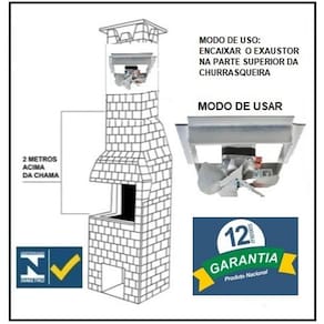 Exaustor Churrasqueira 27cm Quadrado Ventimais diâmetro interno 27cm diâmetro externo 33cm bivolt frequência 60hz potência 97w rotação 1490rpm vazão de ar 1190m³/h motor 1/25CV MOTOR WEG PRODUTO NACIONAL