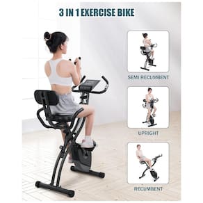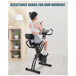 3 in 1 Folding Exercise Bike Stationary for Home Use Riding exercise bike helps people relax and feel clear in your mind, more importantly, our exercise bike is suitable for teenagers and seniors. The exercise bike can track multiple sports data, including real time heart rate, speed, total mileage, time count and calories burned. Monitor of Folding Exercise Bike makes you better understand your own fitness status Features of Foldable Exercise Bike Stationary Quite Exercise Bike The folding exercise bike with magnetic resistance never come in contact with the flywheel. This exercise bike is silent, stable and low maintenance. Durable Arm Leg Resistance Bands The exercise bike has durable arm and leg resistance bands, allowing targeting of various muscles while maintaining a full range of motion. Digital Monitor of Exercise Bike The exercise bikes LCD monitor can effectively track your fitness progress with easy to read multi function digital monitor. Monitor your distance, speed, time and heart rate to see how hard you work Space Saving The transportation wheels and folding capabilities of the stationary bike give you control of your workout and in home space. Comfortable Adjustable Seat of Exercise Bike The exercise bike with wide padded seat holds up to 265 lbs, allowing a comfortable and longer ride. Dimensions of Exercise Bike The size of stationary bike is 37.7 16.9 44.5 inches. User Tips of Exercise Bike Make sure the exercise bike is perfectly assembled before use. Pedal lightly on exercise bike for warm up first before workouts. Do not choose high resistance levels of this exercise bike for the first use. Choose a low resistance at first and the exercise bike will be comfortable for you. Do not apply pressure beyond exercise bike max. The max load capacity of Folding Exercise Bike265 lbs. Wipe with a mildly damp cloth Marca: Não Informado