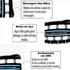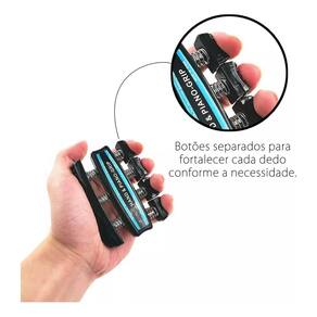 Exercitador para dedos HAND e PIANO GRIP É um exercitador para mãos e dedos que auxilia na reabilitação de pacientes que sofreram algum tipo de lesão nas mãos ou dedos, utilizado em lesões do trabalho como LER (Lesão por esforço repetitivo) ou também para quem deseja fortalecer a musculatura de dedos e mãos. É ergonômico, promove o fortalecimento e auxilia no movimento dos dedos. Possui molas independentes, o que faz com que cada dedo seja fortalecido individualmente. Seu tamanho compacto é ideal para ser utilizado no conforto do lar ou para levar em viagens. Basta apertá-lo para começar a sentir a musculatura enrijecendo. ESPECIFICAÇÕES: Medidas aproximadas: 9x7x1 cm. Peso aproximado: 55 gramas.