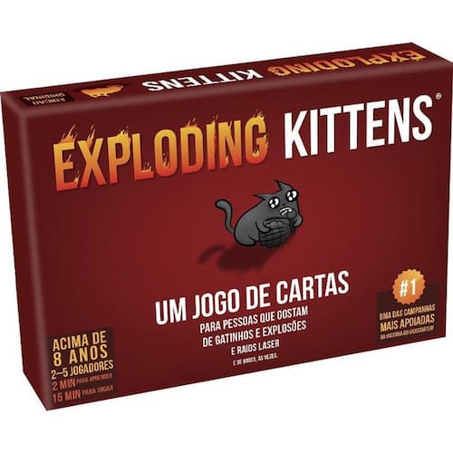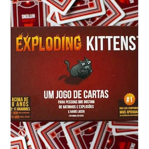 Exploding Kittens é uma versão da Roleta Russa altamente estratégica movida a gatinhos. Os jogadores fazem seus turnos comprando cartas até que alguém compre um gatinho explosivo e perca o jogo. O baralho é formado de cartas que permitem a você evitar a explosão espiando a carta antes de comprá-la, forçando seu oponente a comprar múltiplas cartas ou embaralhando a pilha de compra.