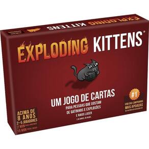 Exploding Kittens é uma versão da Roleta Russa altamente estratégica movida a gatinhos. Os jogadores fazem seus turnos comprando cartas até que alguém compre um gatinho explosivo e perca o jogo. O baralho é formado de cartas que permitem a você evitar a explosão espiando a carta antes de comprá-la, forçando seu oponente a comprar múltiplas cartas ou embaralhando a pilha de compra. O jogo fica mais e mais intenso a cada carta que você compra porque quanto menos cartas disponíveis no baralho, maior a chance de comprar um gatinho e explodir em uma gigantesca bola de fogo felino. COMPONENTES - 56 cartas no tamanho 63 x 88mm - Folheto de regras