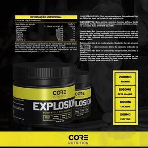 Explosion powerfull pre wokout 150g core nutrition Sabor: abacaxi Explosion core nutrition: contém ingredientes energéticos e neura estimulantes que juntos tornam a sua sessão de treino ainda mais pesada. A beta alanina aliada à taurina e a cafeína são capazes de criar as condições físicas e mentais adequadas para a realização dos treinos mais intensos que você pode imaginar, retardando exponencialmente o desgaste físico e a fadiga muscular.