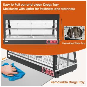 Equipado com iluminação LED brilhante e uniforme para realçar pizzas, hambúrgueres, massas e outros itens, oferece visibilidade panorâmica em 360 graus. As três prateleiras são removíveis e ajustáveis em altura, facilitando limpeza e adaptação a diferentes tamanhos de produtos. O tanque de água na base retém umidade interna, minimizando perda por evaporação em operações prolongadas.