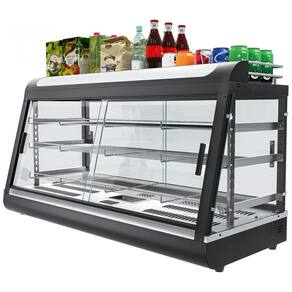 O Expositor Aquecedor de Alimentos Comercial Anpuce com 3 prateleiras e rack superior é projetado para exibição e manutenção de temperatura em ambientes de buffet, restaurantes e lanchonetes. Construído com vidro temperado resistente, possui portas frontais e traseiras deslizantes para acesso facilitado. A iluminação LED integrada, com duas lâmpadas laterais e duas superiores, garante visibilidade otimizada do conteúdo.