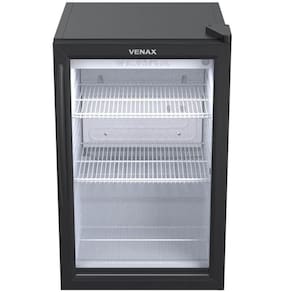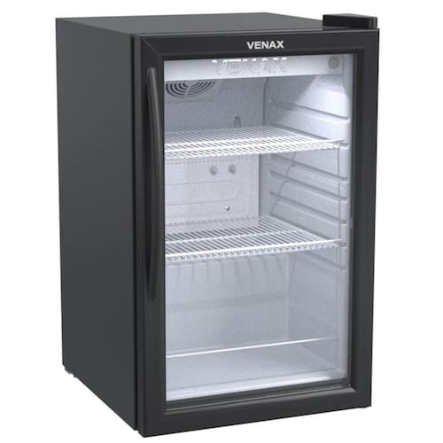 - Com design moderno em preto fosco e iluminação em LED branco, o Expositor Venax 100L é ideal para valorizar e conservar bebidas não alcoólicas como sucos, águas e refrigerantes.