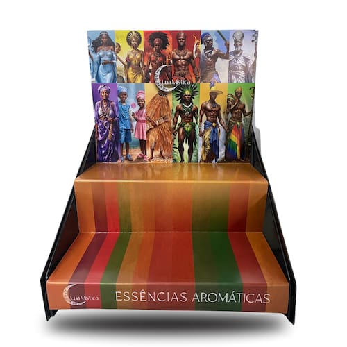Organização, cor e espiritualidade para o seu ponto de venda. Apresente suas essências aromáticas de forma profissional e atrativa com este expositor exclusivo, ideal para lojistas, bancas de artigos esotéricos e espaços.