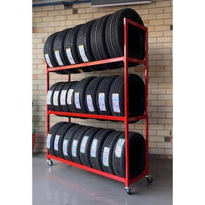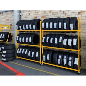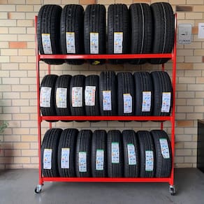 Utilizado para expor pneus de motos e carros em show room e armazenamento em estoques