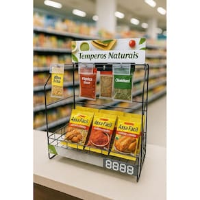 Display Expositor com ganchos para Mercado Mercearia Porta Tempero, Celular, Encartelados com Ganchos Serve para comércios e mercearias em geral, como colocar bijuterias, chaveiros, óculos, acessórios, brinquedos, eletrônicos, petiscos, encartelados em geral. Pode ser em Padarias, Mercados, Conveniências, Petshops, Posto de Combustível, entre outros. Material: Ferro Cor: PRETO Tamanho: Comprimento 45 cm Largura 25 cm Altura 51,5 cm Tamanho da Placa para personalização: 45 cm x 11 cm do vendedor: 2 meses Marca: Não Informado Ean: 0734598532666