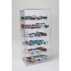 Como ele é transparente, é possível ver todos os angulos de cada carrinho, assim ficam expostos de forma incrível na sua parede