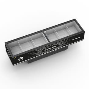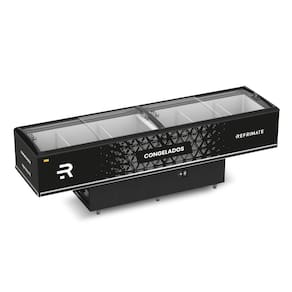 - Tampas superiores deslizantes em vidro semi curvo temperado de baixa emissividade;