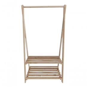 ITENS INCLUSOS:Uma Arara com duas prateleiras e um cabideiro em madeira de Pinus - ITENS DECORATIVOS NÃO INCLUSOS.
