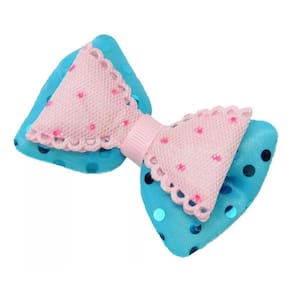 Este pacote contém 20 peças de apliques de laço duplo com paetê nas cores azul bebê e rosa. Cada aplique possui 71mm de tamanho.