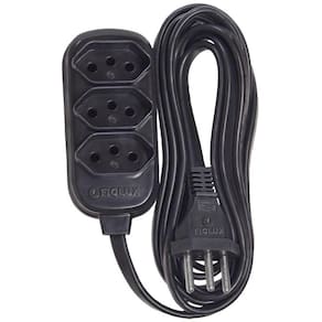 Extensão 5 Metros Tripolar Preta Com 3 Tomadas 2P+T Fiolux