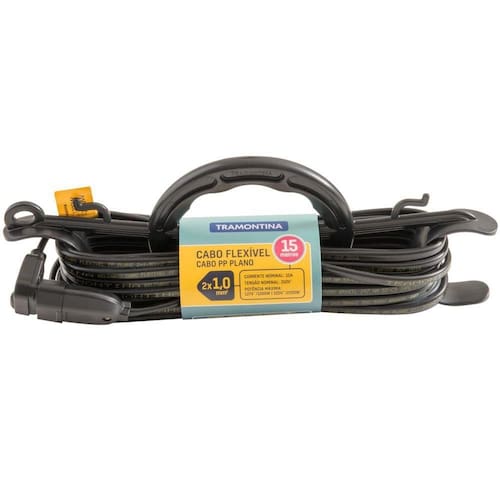 Extensão Cabide 1 Mm Tramontina 15 M Extensão Cabide 1 mm Tramontina 15 m Com a Extensão Cabide 1 mm Tramontina 15 m você terá muito mais praticidade e funcionalidade em seus afazeres. Produzida com matéria-prima de alta qualidade, ela possui 15 metros de comprimento e suporta 1200 W em 127 e 2200 W em 220 V, o que garante que possa usá-la nas mais variadas tarefas e em diversos locais. Ela acompanha cabide em termoplástico, peça que auxilia na utilização e facilita o armazenamento. Com a Tramontina, você tem muito mais praticidade e qualidade no seu dia a dia!