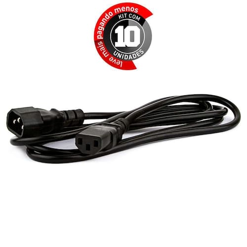 Extensão Cabo De Força - 3 Mt - Kit 10 Prolongue o seu cabo de força sem precisar trocar todo o cabeamento e ter mais trabalho. Com a Extensão Cabo de Forçavocê poderá aumentar o comprimento do cabo de energia elétrica. Ele tem bitola de 3x0,75, voltagem máxima de 750V e atende as normativas NBR 13249. Características: Voltagem máxima: 750V Bitola: 3x0,75mm - Padrão NBR 13249 - Aprovado pelo INMETRO Tamanhos disponíveis: 1,5m e 3metros Garantia: 3 meses