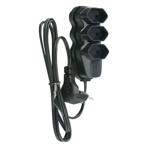 Extensao Com Plugue 2p 90 3x0,75 1,5m Preta Apresentamos as extensões elétricas Com Plugue 90, produtos com o grande diferencial para os que necessitam de mais espaço atrás dos móveis, pois possuem um plugue com ângulo de 90 graus. Um produto de qualidade e que garantem segurança aos usuários, atendendo ao novo padrão brasileiro de plugues e tomadas (NBR 14136). Este produto é produzido com cabo PP, que as torna ainda mais resistentes. Modelo: Extensão Elétrica com Plugue 90; Amperagem: 10A / 250V; Cabo: Paralelo ou PP; Espessura do Cabo: 0,75mm; Número de tomadas: 03; Ideal para: Uso residencial e comercial;