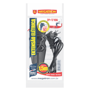 Apresentamos as extensões elétricas Com Plugue 90º, produtos com o grande diferencial para os que necessitam de mais espaço atrás dos móveis, pois possuem um plugue com ângulo de 90 graus. Um produto de qualidade e que garantem segurança aos usuários, atendendo ao novo padrão brasileiro de plugues e tomadas (NBR 14136). Este produto é produzido com cabo PP, que as torna ainda mais resistentes. Modelo: Extensão Elétrica com Plugue 90°; Amperagem: 10A / 250V; Cabo: Paralelo ou PP; Espessura do Cabo: 0,75mm²; Número de tomadas: 03; Ideal para: Uso residencial e comercial;