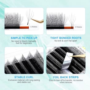NAGARAKU Extensão de cílios em forma de W 5D VERSÃO 2.0 Suprimentos de cílios Natural Macio Volume 0,07 mm D Curl 8-12 mm Mix Pré-fabricados Ventiladores PBT Preto Fosco Cluster W Lash Easy Fanning - 5D W LASH VERSÃO 2.0: As raízes das 5 extensões de cílios individuais são unidas como uma forma de W. Estas são chamadas de extensões de cílios W Clover. É muito fácil fazer ventiladores ao agarrar com uma pinça, você pode obter rapidamente o conjunto de ventiladores de volume 5D sem nenhuma habilidade - Visual exclusivo: O conjunto especial de volume de base de cílios finos com 5 pontas torna a extensão mais graciosa e fofa, a versão 5D W Eyelashes 2.0 foi atualizada com um design de comprimento de três segmentos, o que torna os cílios mais naturais e densos. O arranjo das raízes planas é claramente visível e os cílios são fáceis de pegar sem quebrar as raízes - ECONOMIZANDO TEMPO: em comparação com outras extensões de cílios clássicas, as extensões de cílios W são feitas à mão em forma de W e podem ser usadas diretamente. Enxertar 5 extensões de cílios ao mesmo tempo, muito adequado para uso intenso em salões, para uma pessoa precisa de cerca de 100-140 feixes, 1 bandeja de cílios pode ser usada em 10-15 clientes. - MATERIAL PREMIUM: Os ventiladores de cílios W Clover são feitos por um material exclusivo pesquisado e desenvolvido que é leve, macio e natural. A qualidade dos nossos cílios foi certificada pela SGS, MSDS. - FÁCIL DE USAR: O papel de parede laminado é conveniente para coleta e transferência, não há resíduos no azulejo dos cílios. Mesmo se você for um iniciante, você pode facilmente usar os cílios W pré-fabricados. Você pode escolher a extensão de cílios satisfatória em forma de W de acordo com suas necessidades.