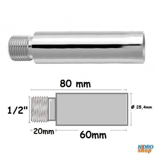 Extensão de Latão Cromado de 1/2 x 60mm para Torneiras Chuveiros - 171503