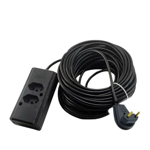 CARACTERÍSTICAS E VANTAGENS: - Extensão flexível, fácil de enrolar, transportar e armazenar. - Dupla camada de isolamento. - Cabo flexível PP 500V. - Seção Nominal: 2x2,5mm2. - Pino macho de 10A. - Tomada Femea Dupla, serve o pino Fino de 10a e Também o pino Grosso de 20a