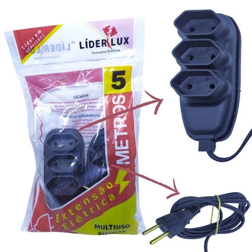 Extensão Elétrica 3 Tomadas Lider Lux 5 Metros Multiuso