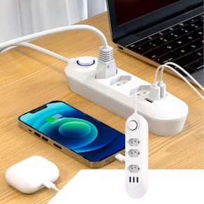 3 tomadas elétricas espaçadas para acomodar plugues grandes sem obstruções 3 entradas usb para carregar dispositivos móveis como smartphones e tablets Design compacto e leve, ideal para transporte e uso em diferentes ambientes Proteção contra surtos elétricos e sobrecargas, garantindo a segurança dos aparelhos conectados Compatível com redes elétricas 127v/220v, funcionando como bivolt automático Fusível de proteção integrado para evitar danos em caso de picos de energia Cabo de energia com comprimento ideal para facilitar o posicionamento