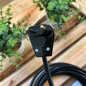 - Plugue Macho: Plugue com 2 pinos com prensa cabo 10A preto Pezzi