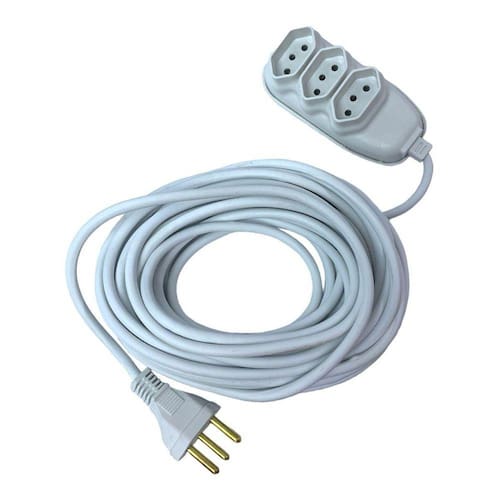 Extensão elétrica tripolar cor branca 10 metros Extensão multiuso tripolar branca - 10 metros