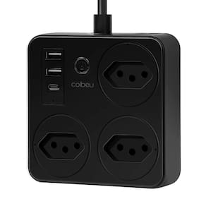 Design Funcional e EleganteNa cor preta e com acabamento discreto, o produto possui um cabo reforçado de 2 metros, proporcionando maior alcance e flexibilidade na instalação. O botão físico de liga/desliga em cada tomada permite o uso manual sempre que necessário.