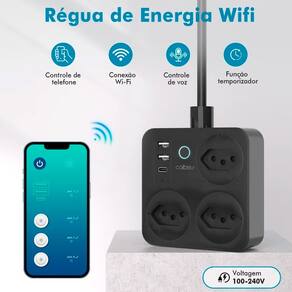 Funções Inteligentes Adicionais Criação de temporizadores e cronômetros personalizados para cada porta individualmenteMonitoramento de consumo de energia em tempo real (se suportado pela versão)Notificações e alertas diretamente no smartphoneModo ausente para simular presença em casa Especificações Técnicas Modelo: WKC-F321Entradas: 3 tomadas (padrão brasileiro), 2 portas USB tipo A, 1 porta USB tipo CCapacidade Total: 2500W / 10A (em 250V)Voltagem: Bivolt automático (100-240V, 50/60Hz)Conectividade: Wi-Fi 2.4GHz (não suporta 5GHz)Aplicativos Compatíveis: Tuya Smart, Smart LifeAssistentes Virtuais: Amazon Alexa, Google HomeMaterial: ABS de alta resistência e segurançaCor: PretaComprimento do Cabo: 2 metrosTemperatura de Operação: -20°C a 50°CModo de Controle: Aplicativo móvel e botão físico Conteúdo da Embalagem 1x Extensão Inteligente Wi-Fi com 3 Tomadas e 3 Entradas USB1x Manual do Usuário (com instruções em português)